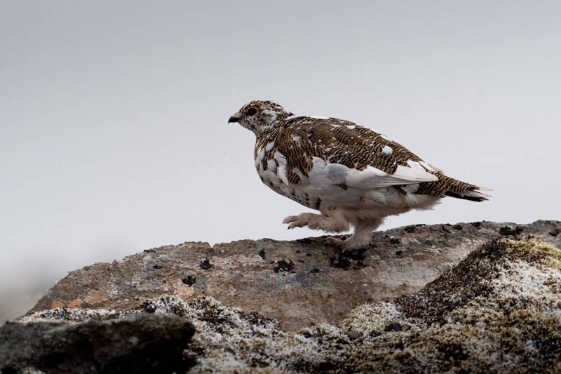 Linving in the tundra and mountains of the northern hemisphere, this Galliformes - from the pheasant family - adapts its plumage to the different seasons and its genus name Lagopus "hare's foot" comes from the size of its paws covered with feathers